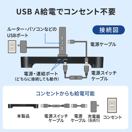 USB A給電でコンセント不要