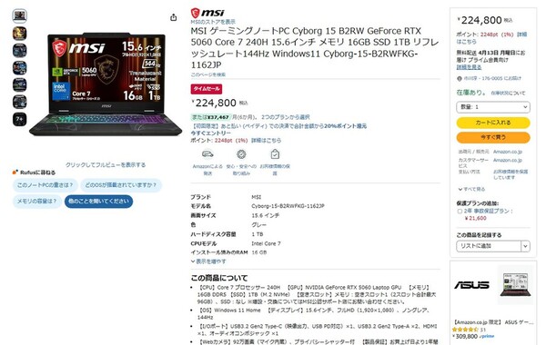 ゲームも仕事もこれ一台でこなせる! Core 7 240H&RTX 5060搭載のゲーミングノートがタイムセールで22万円台