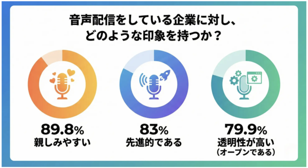そんな中で、じわじわ存在感を増しているのが「音声」です。実際、とある調査では、音声配信を聴いた人のおよそ9割が「親近感が湧く」と回答。