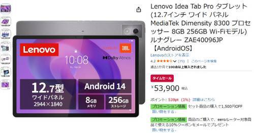 Lenovoのタブレット「Idea Tab Pro(ZAE40096JP)」がAmazonタイムセール対象。価格は53,900円で販売中。
