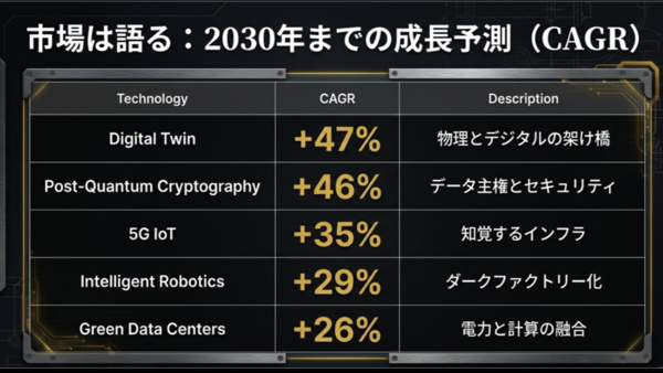 2050年に向けて重要なのは、どの技術を持つかではなく、どの領域と接続するかである。AI、電力、インフラ、製造、都市といった領域を横断しながら、自社の立ち位置と勝ち筋を描くことが求められている。
