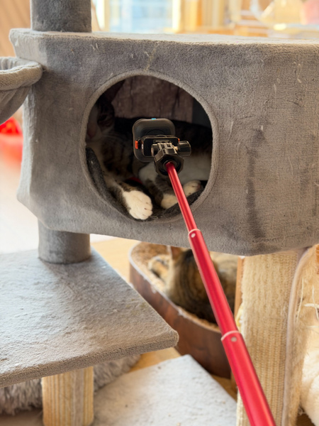 アタッチメントを利用して自撮り棒につけて猫に迫るの図
