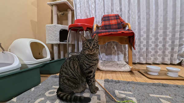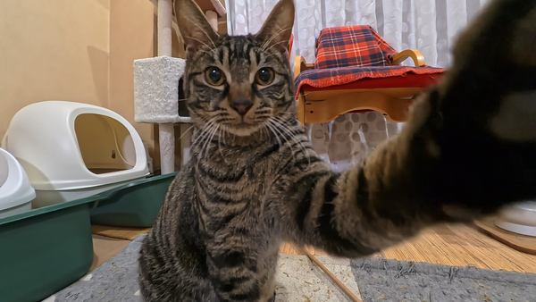 撮影最短距離は約30cmとちょっと長めなので猫がボケてしまったが、これは別売りのマイクロレンズキットを使えば対応できる。猫の顔をアップで撮りたいなら必要かも。今回はそこまで用意できなかったので、またいずれ。