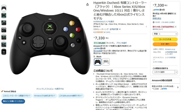 Amazon.co.jpにて、初代Xbox風の有線コントローラー「Hyperkin DuchesS」が販売中だ。価格は7330円。