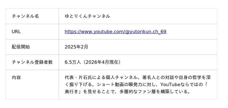 樋渡: 一方で、片石社長個人の「ゆとりくんチャンネル」も立ち上げました。こちらはどのような意図があったのでしょうか?