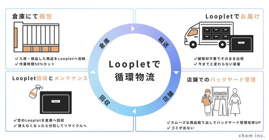 アパレル物流の「使い捨て」を、循環インフラへ。株式会社chom、段ボールとOPP袋を一体化した再利用型梱包「Looplet」を開発。