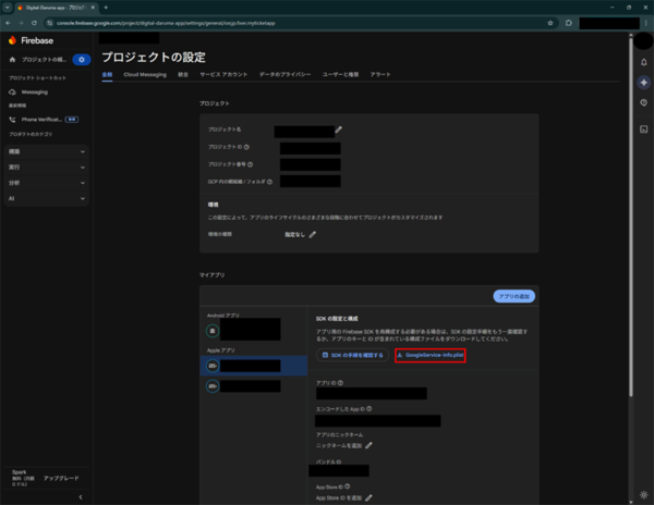 Firebase Consoleでアプリを登録すると、プラットフォームごとの設定ファイルがダウンロードできます。 これをプロジェクトの所定の場所に置きましょう。