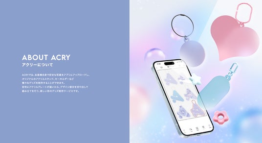 2021年9月にサービスを開始した、スマートフォンからオリジナルのアクリルグッズを制作できるアプリケーションです。写真をアップロードするだけで、アクリルスタンドやキーホルダーなどを制作することができ、完成したアクリルプレートは自宅に届けられます。デザイン部分を切り出して組み立てるという、新しいグッズ制作体験を提供しています。