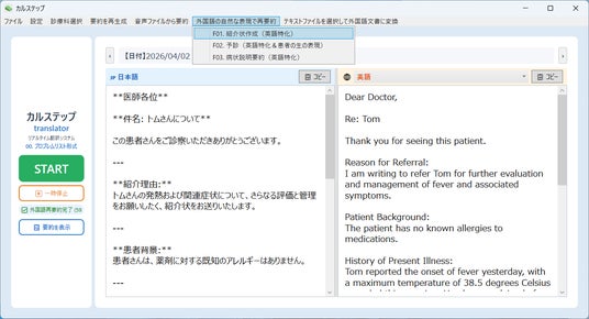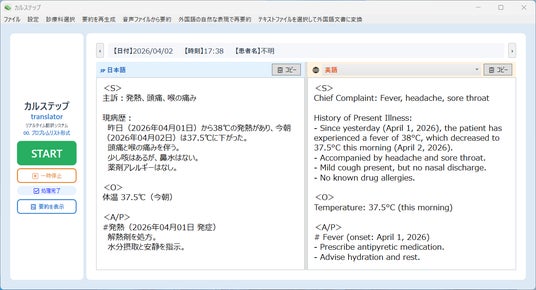 合同会社MJSカンパニー(所在地:群馬県前橋市富士見町原之郷1074-5、代表:丸山潤)は、診察音声要約AIサービス「カルステップ」の新機能「カルステップ-translator」を2026年4月9日より提供開始しましたことをお知らせいたします。