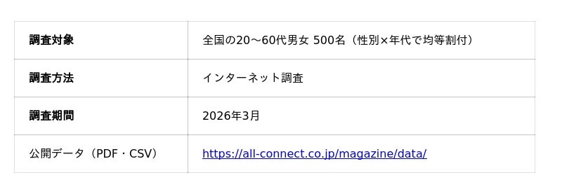 本調査の完全版レポートおよび、JALモバイル立ち上げ担当者へのインタビュー記事は、オールコネクトマガジンにて公開しています。詳しくは調査記事(https://all-connect.co.jp/magazine/mobile-value-survey-2026/)をご覧ください。