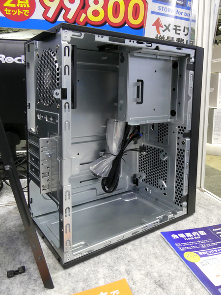 STORM for businessは8万7800円(税抜)からという低価格なPCであることに加え、ユーザーのニーズに合わせたスペックを実現できる優れたカスタマイズ性能が売り。ケースはシンプルな作りで168×353×265mmとコンパクトなサイズながら、2スロット占有のGPUやDVDドライブ、SSDなどを追加できるスペースを確保している。