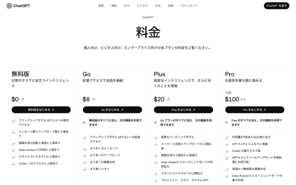 OpenAIは4月10日、ChatGPTに月額100ドルの新たな「Pro」プランを導入すると発表した。Plusプラン(月額20ドル)に比べ、開発用途で利用されるCodex機能の使用量が多い点が特徴。