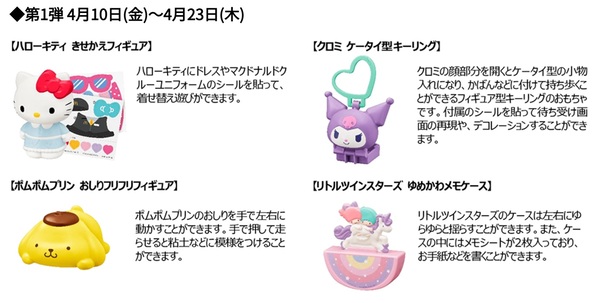 マクドナルドはハッピーセット「トミカ」とハッピーセット「サンリオキャラクターズ」を本日4月10日より発売します。