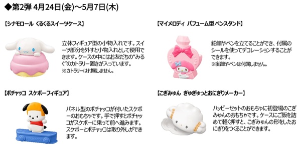 また、4月25日・26日の2日間は、ハッピーセット「トミカ」1セット購入ごとに「トミカ プレイングシート&トヨタガズーレーシングGR GT3ポスター」を、「サンリオキャラクターズ」1セット購入ごとに「ポムポムプリン30周年おめでとうシール」が配布されます。いずれも数量限定で、なくなり次第終了です。