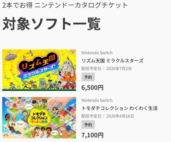 ちなみに本作は、「2本でお得 ニンテンドーカタログチケット」の引き換え対象ソフト。チケット自体はすでに販売終了しているが、有効期限が残っている人は交換できる。