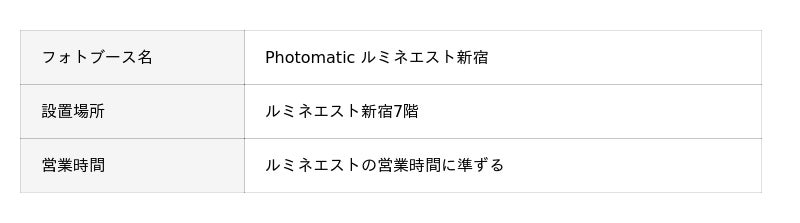 キタムラ・ホールディングス グループの株式会社フォトクリエイト(本社:東京都新宿区、代表取締役社長:大迫 由典)が運営するセルフフォトブランド「Photomatic(読み:フォトマティック)」は、2026年4月8日(水)よりルミネエスト新宿7階にて営業を開始しました。