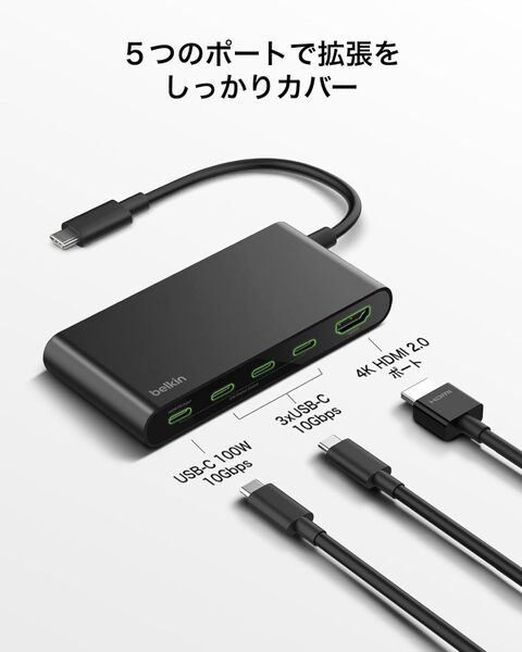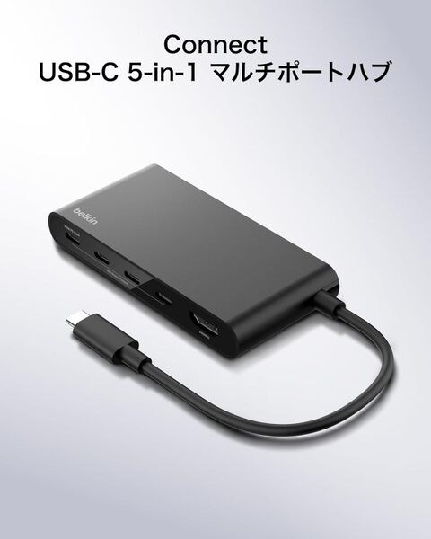 Belkin Connect USB-C ハブ 5-in-1 AVC021fqBKは、USB-Cポート1つから複数の機器を接続できるマルチポートハブ。