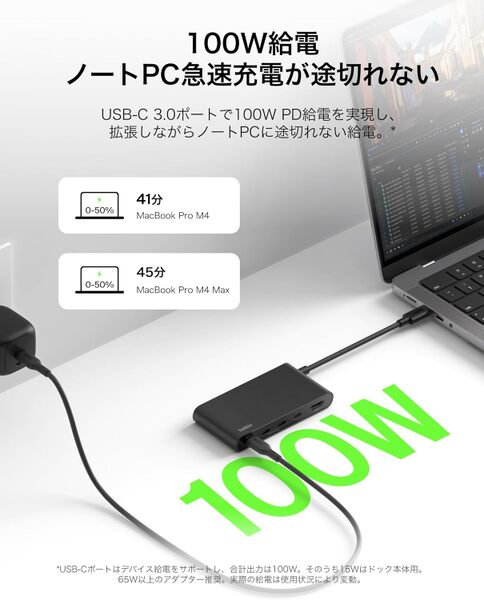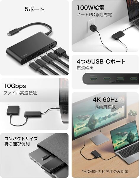 4K出力、100W給電、高速転送といった実用性の高い要素をバランスよく備えており、日常用途でも仕事用途でも扱いやすい仕上がりになっています。