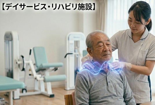 【デイサービス・リハビリ施設】機能訓練の前後に使用することで、筋肉の緊張をほぐし、運動効果の向上や疲労回復をサポート。利用者様の「また来たい」という意欲を引き出します。