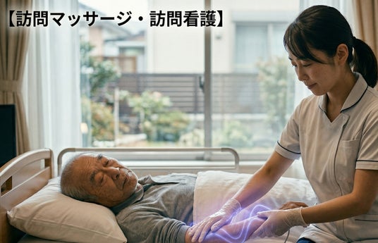 【訪問マッサージ・訪問看護】ベッドから起き上がれない方の関節の可動域サポートや、拘縮予防のケアとして。撫でるだけの施術で、利用者様の痛みへの恐怖心を取り除きます。