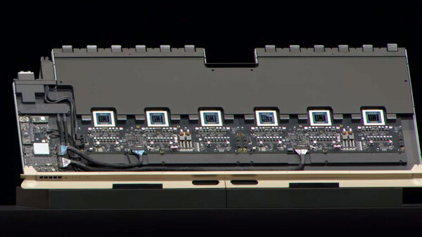 前述したとおり、Kyber Rackでは18枚のCompute Bladeを一塊にして、これが4つ縦方向に並んでいる。間をつなぐのはSwitch Bladeだが、この長さはどう見ても2塊分しかカバーしていない。したがって、4塊全体で相互接続しようと考えた場合、Switch Blade同士の相互接続を考える必要があるのだが、改めて下のSwitch Bladeを見ていただくとわかるように、そういったポートは特に見当たらないからだ。