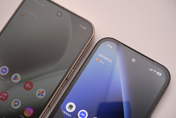 Pixel 9aが同じ6.3型のディスプレーを搭載しているのに、Pixel 10aは本体の横幅サイズがわずかにスリムになりました。幅が0.3mmスリムになり、質量が3g軽くなっています。代わりに厚さは0.1mm、高さは0.2mmほどPixel 10aの方が大きくなっていますが、実際の使用感は、横幅がスリムになるほうが片手持ち操作の心地よさに大きく寄与すると思います。
