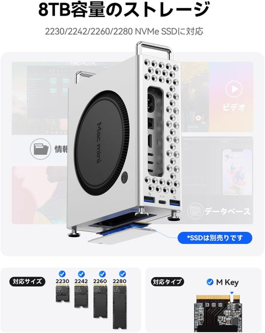 - 革新的な利便性: これらすべての機能が、Mac miniのデザインを損なうことなく、たった一つのスタンドに集約されています。