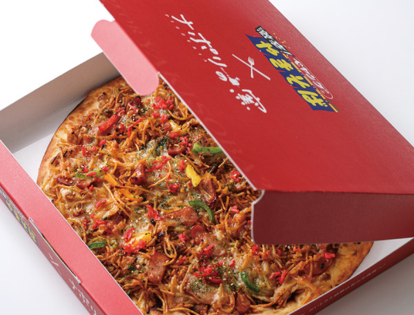 宅配ピザチェーンの「ナポリの窯」は、まるか食品のカップ焼そば「ペヤング」の食材を使用した「ペヤングピザ」と「激辛!ペヤングピザ」を4月14日より発売します。直径30cmのピザで価格は各3200円。
