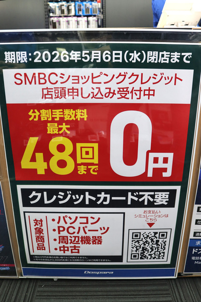 そのほか、ドスパラ大阪・なんば店では、5月6日までショッピングクレジット手数料最大48回まで0円のキャンペーンを実施中です。ショッピングクレジットの利用を考えていた人はこの機会をお見逃しなく!