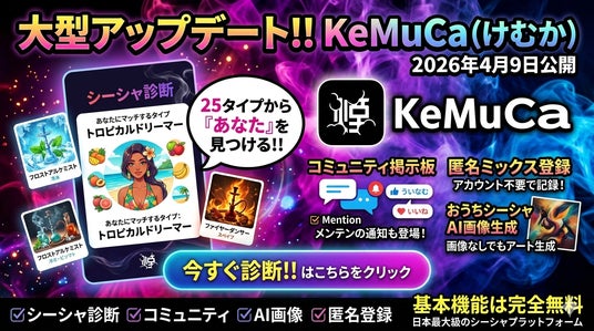 この8ヶ月で25以上の主要機能を新たに実装しており、今回の大型アップデートでは、自分のシーシャタイプが25種類の中からわかる「シーシャ診断」、シーシャ好きが集まれる「コミュニティ掲示板」、アカウント登録なしでも記録できる「匿名ミックス登録」など、ユーザー体験を一気に拡張する新機能をリリースしました。