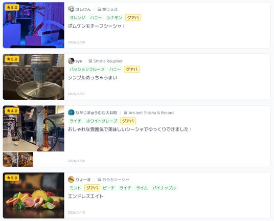 「あのお店のあの煙、最高だった」「●●さんが作ってたあのミックス、もう一回吸いたい」といったリアルな声が、そのままお店・スタッフ・作り手に届く。お客さんの"好き"が、シーシャ業界の血流になっていくイメージです。