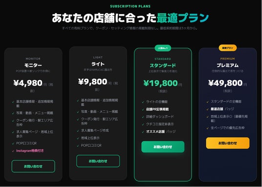 ビジネス向けページでくわしく見る(現在店舗運営サブスクプラン及び広告枠は個別申し込み中です)