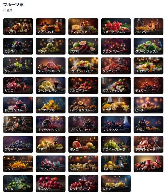 - カテゴリ別にDB分類:フルーツ/ミント/スイーツ/ドリンク/スパイス・ハーブ/ユニークの6カテゴリで整理