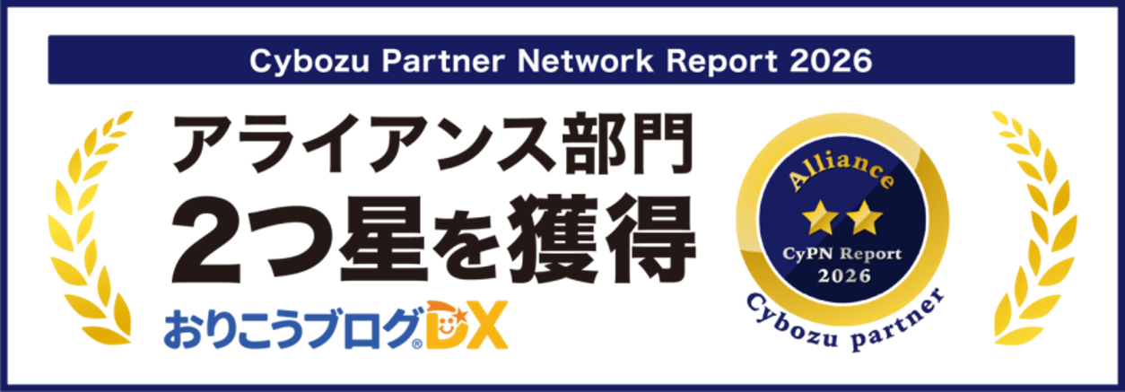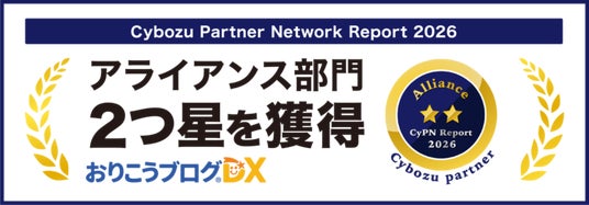 『kintone』連携ツール『おりこうブログDX』、サイボウズのパートナー評価制度「CyPN Report 2026」にて、アライアンス部門で2年連続2つ星を獲得!