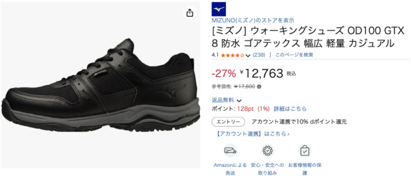 ミズノのOD100 GTX 8が、Amazonで27%OFFの12,763円で販売されています!
