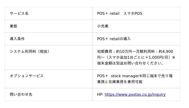 「POS+ retail スマホPOS」について:https://www.postas.co.jp/service/option/smartphone-pos/