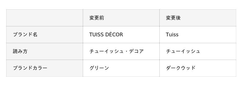 「TUISS DECOR」から「Tuiss」へ。TUISS DECOR、ブランド名・ロゴ・ブランドカラーを刷新