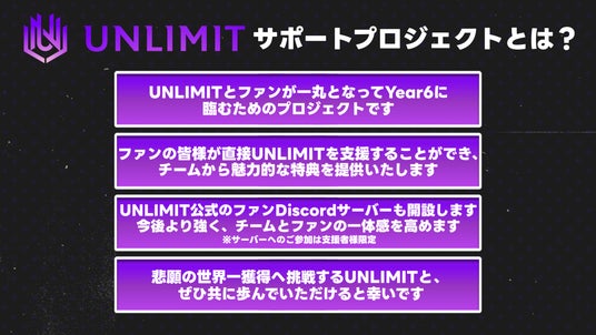 UNLIMIT、世界一を目指すYear6へ ファンが“チームの仲間として共に戦う”クラウドファンディングプロジェクトを開始