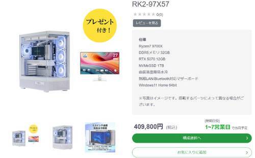 台数限定、今週分だけ。RTX5070Ti搭載「GC-I7G57R」が約5万円引き -