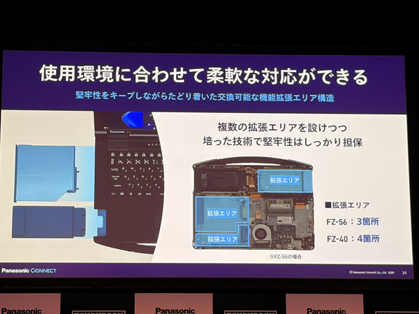 拡張性も高く、FZ-56は計3ヵ所、FZ-40は計4ヵ所と多くの拡張エリアが物理的に設けられている。