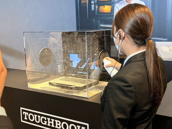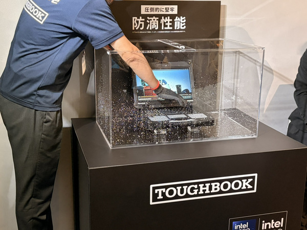 発表会ではタフブックの防滴性能を披露