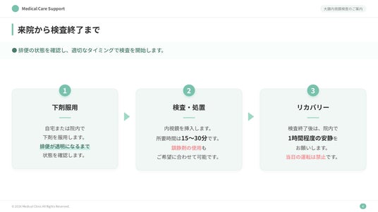 勤務医の約4割が年960時間超の時間外労働。診療ガイドラインや手技マニュアルを投入するだけで説明スライドと動画を一括生成し、資料作成の負担を軽減
