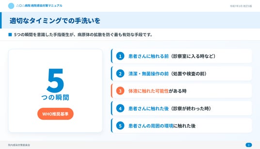 今回追加した医療業界向けサンプルスライドの中から、代表的な5つの活用例を紹介します。いずれも、病院・クリニックで頻繁に発生する患者説明・研修・院内展開のニーズに対応しています。