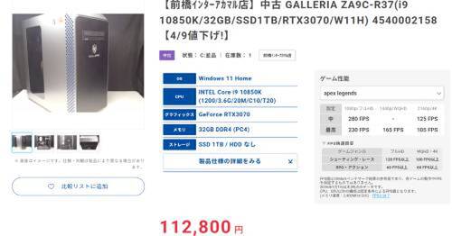 ドスパラ「中古パソコン・PCパーツ値下げ」おすすめPC