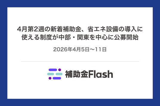 4月第2週の新着補助金、省エネ設備の導入に使える制度が中部・関東を中心に公募開始