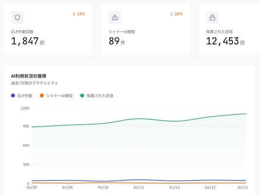 情報システム部門の管理者は、ダッシュボードを通じて「DLPの作動回数」「保護された送信数」「未承認AIへのアクセス試行」をリアルタイムに把握できます。現場の利便性を保ちながら、全社的なAI利用の健全性を可視化します。