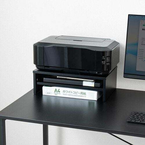 これらのモニター台は、幅40cmというコンパクトさながら中棚付きの2段構造で、優れた収納力を誇る。キーボードやマウス、小物類をすっきり収納できるデザインは、限られた作業スペースでも有効に活用可能だ。デスク上の整理整頓をサポートし、作業効率の向上につながるだろう。