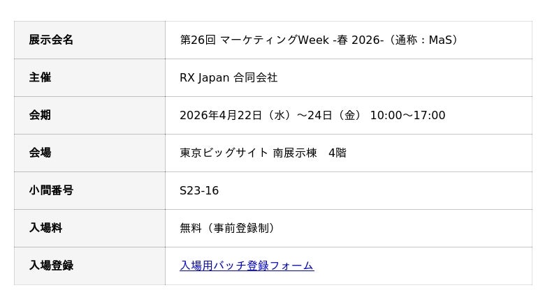 UGC(ユーザー生成コンテンツ)を活用したSNSマーケティング支援サービス「Vimmy」は、2026年4月22日(水)~24日(金)に東京ビッグサイトで開催される日本最大級のマーケティング展示会「マーケティングWeek 2026 春」に出展いたします。