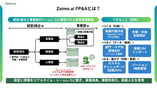 AIネイティブな予実管理・経営管理プラットフォーム「Zaimo.ai FP&A」を提供開始 - 部門別・PJ別など多軸での予実管理に対応