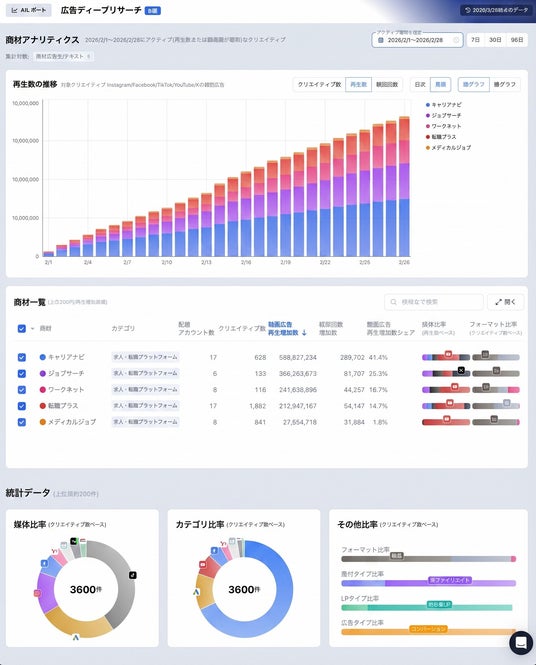 今回リリースした「ディープリサーチ機能」は、こうした現場の課題を解決し、データの裏付けに基づいた精度の高い広告分析を実現します。